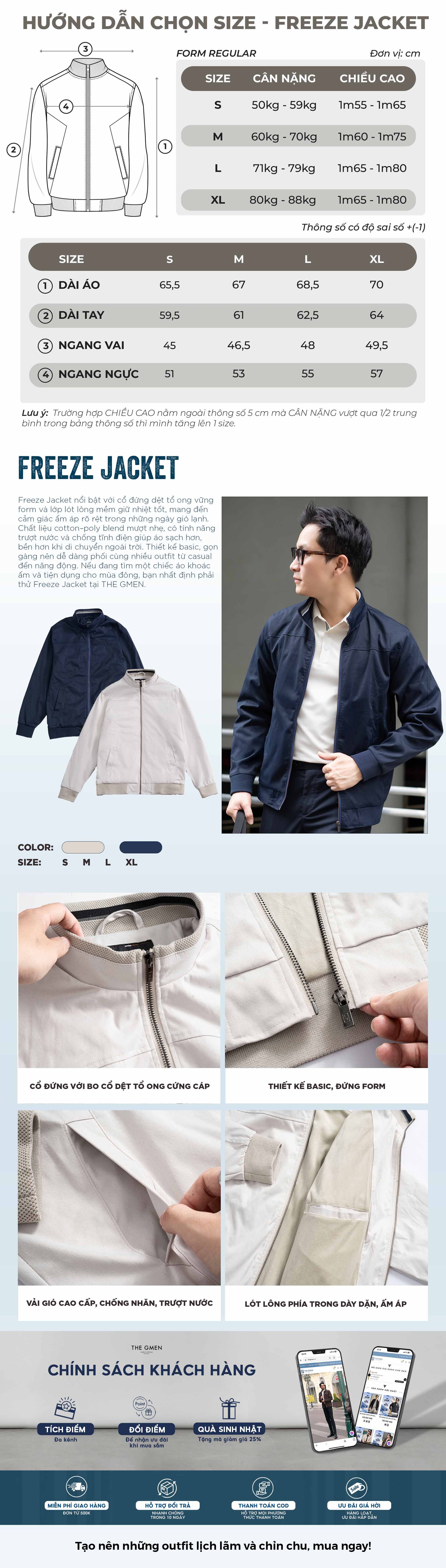 - Cổ đứng với bo cổ dệt tổ ong cứng cáp kết hợp dệt màu mặt trong giúp thêm phần trẻ trung