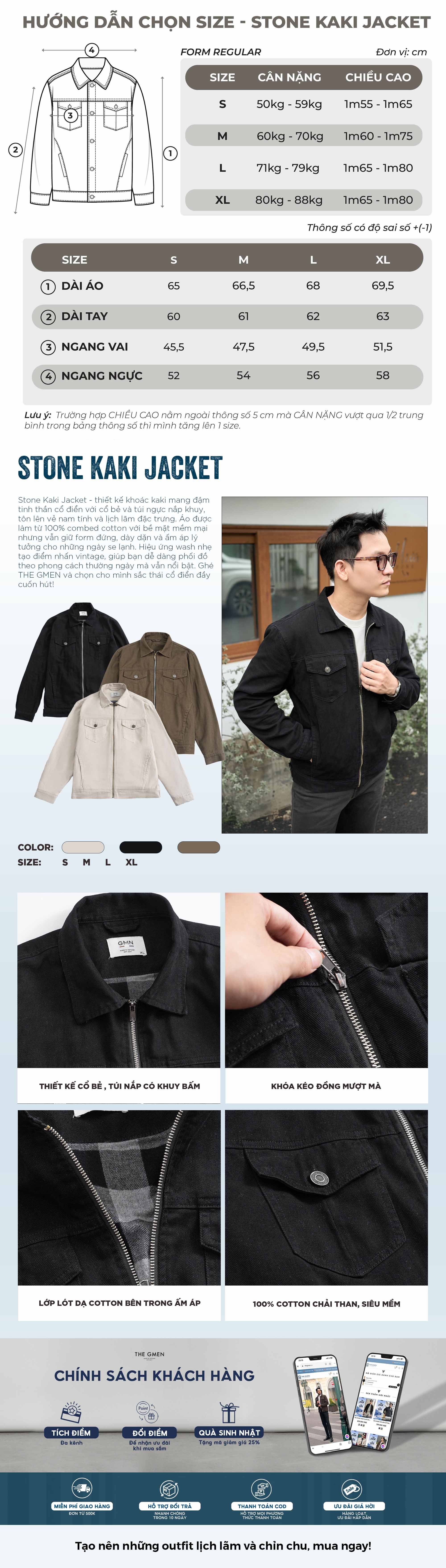 Áo khoác nam vải kaki Stone Kaki Jacket form regular - Đen