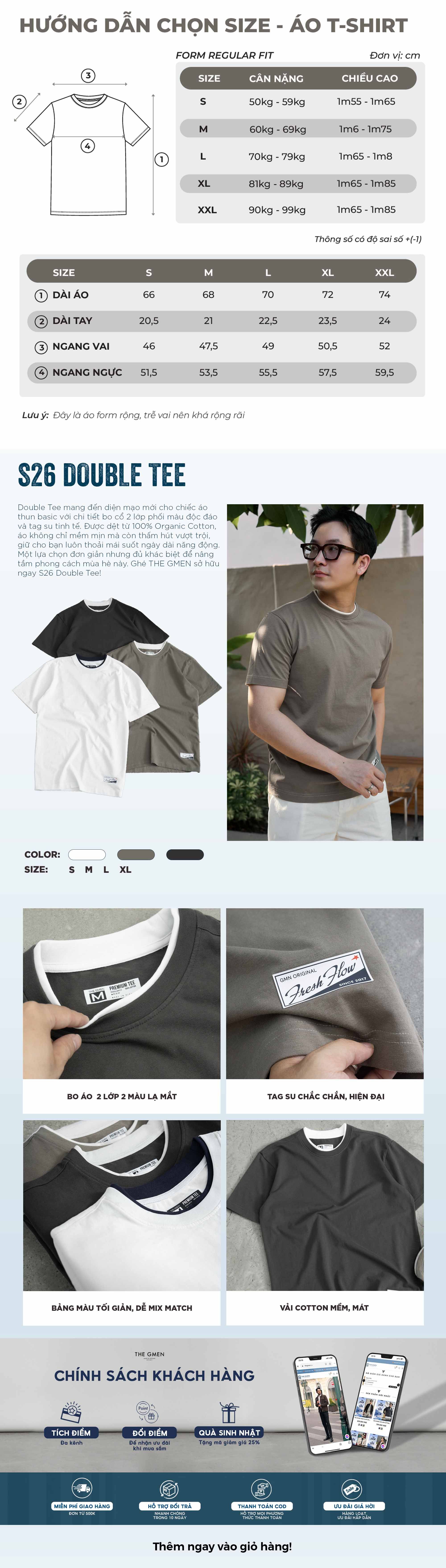 - Bo áo 2 lớp 2 màu lạ mắt - Tag su chắc chắn, hiện đại - Vải cotton mềm, mát - Bảng màu tối giản, dễ mix match