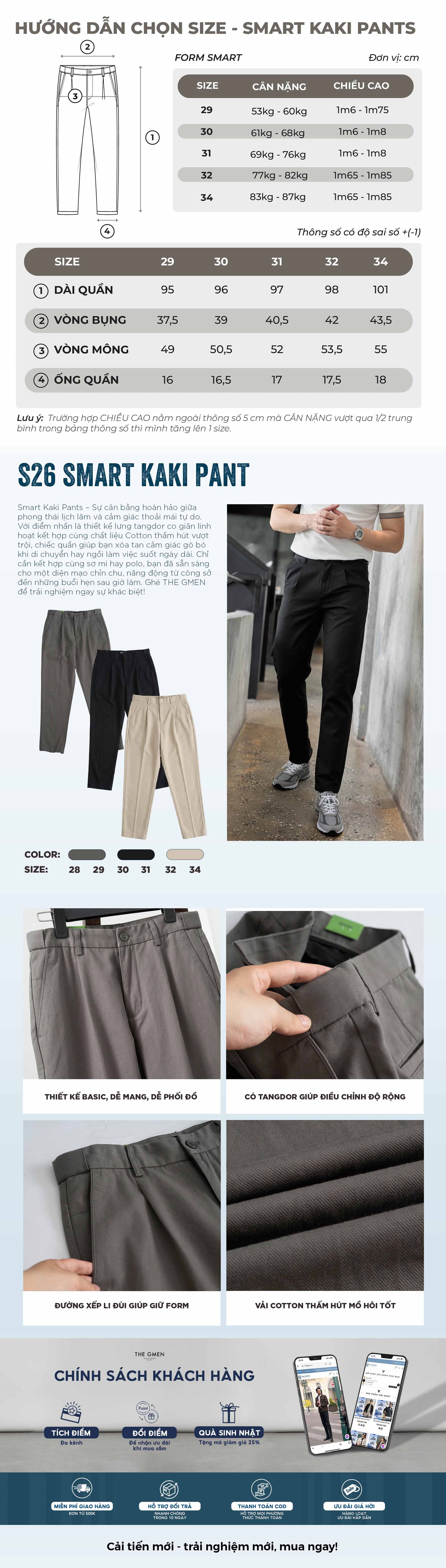 Mô tả sản phẩm: - Thiết kế basic, dễ mang, dễ phối đồ - Có tangdor giúp điều chỉnh độ rộng - Đường xếp li đùi giúp giữ form - Vải Cotton thấm hút mồ hôi tốt